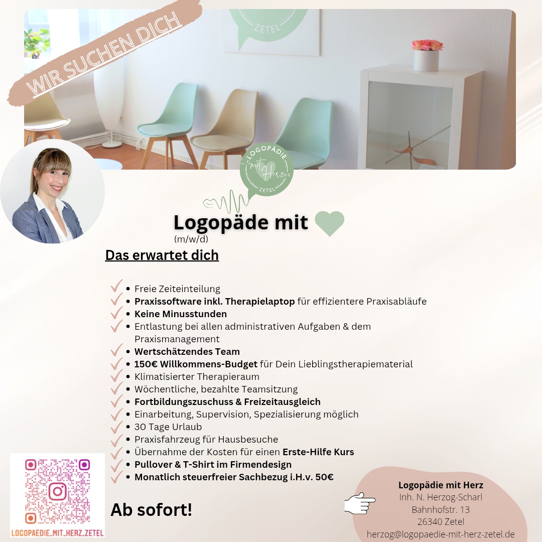 Wir wachsen weiter. Für meine moderne Praxis in Zetel suche ich AB SOFORT Verstärkung (Vollzeit).